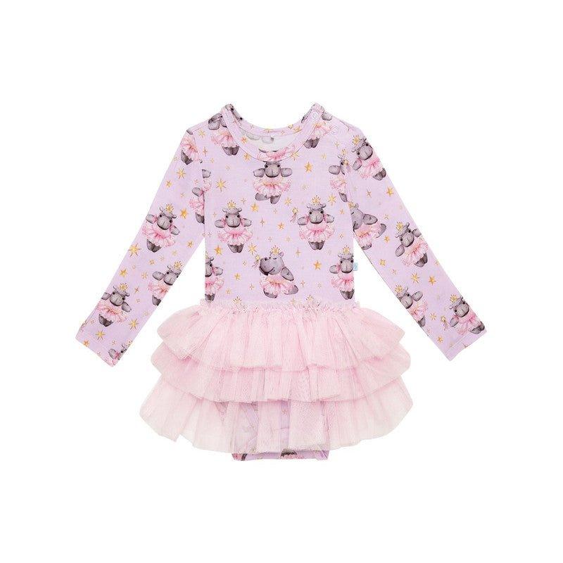 Bamboo Long Sleeve Tulle Skirt Bodysuit - Philomena (Hippos)