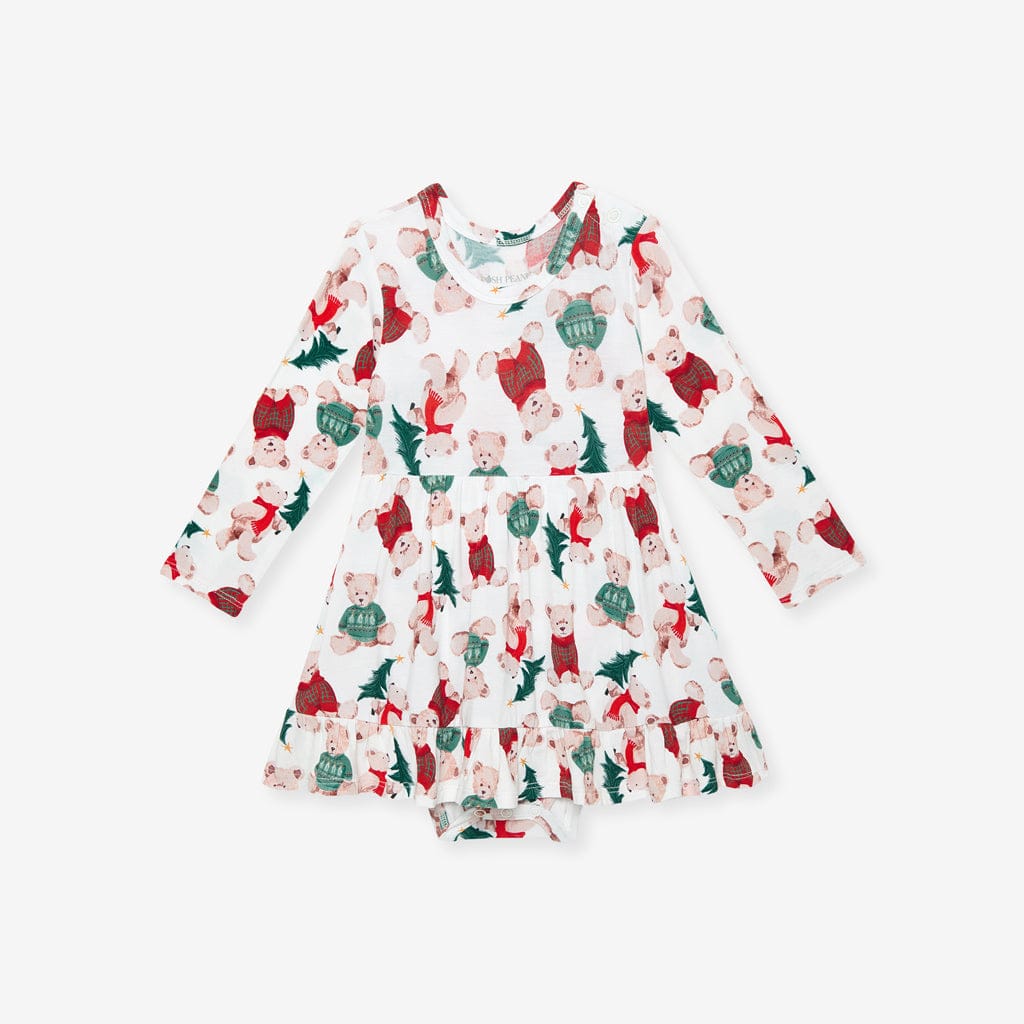 • Product: Posh Peanut Bamboo Ruffled Twirl Bodysuit Dress - Lachlan (Teddy Bears)