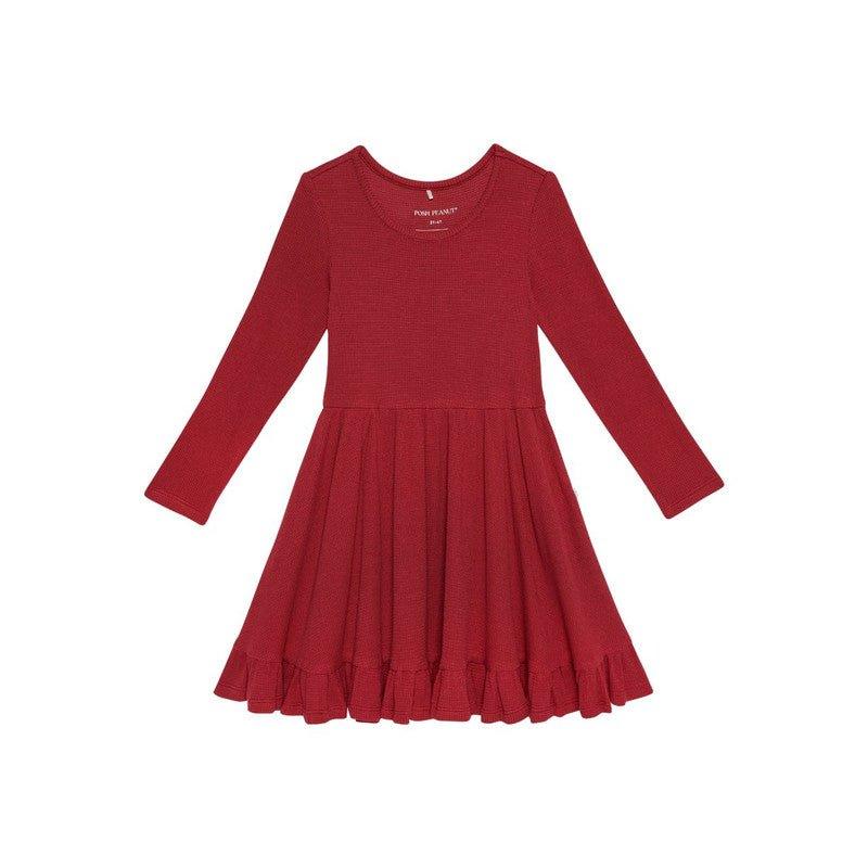 • Product: Posh Peanut Long Sleeve Ruffled Twirl Dress - Crimson Waffle