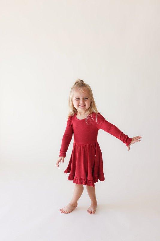 Bamboo Long Sleeve Ruffled Twirl Dress - Crimson Waffle