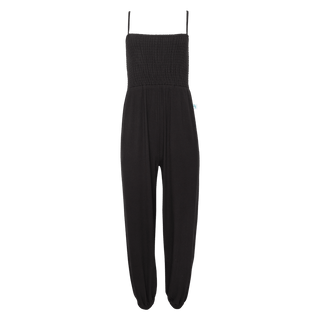 Bamboo Smocked Spaghetti Jumpsuit - Black Ribbed