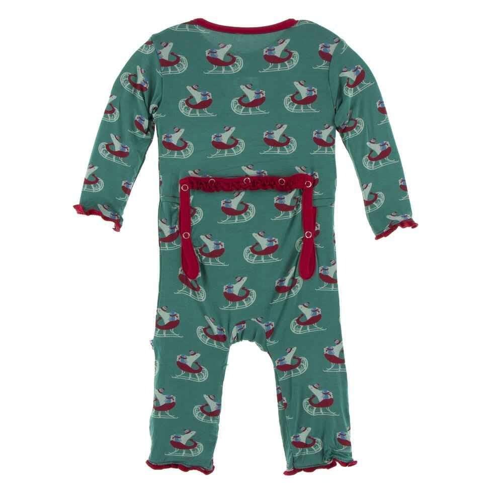 Print Bamboo Muffin Ruffle Coverall with Zipper - Ivy Sled