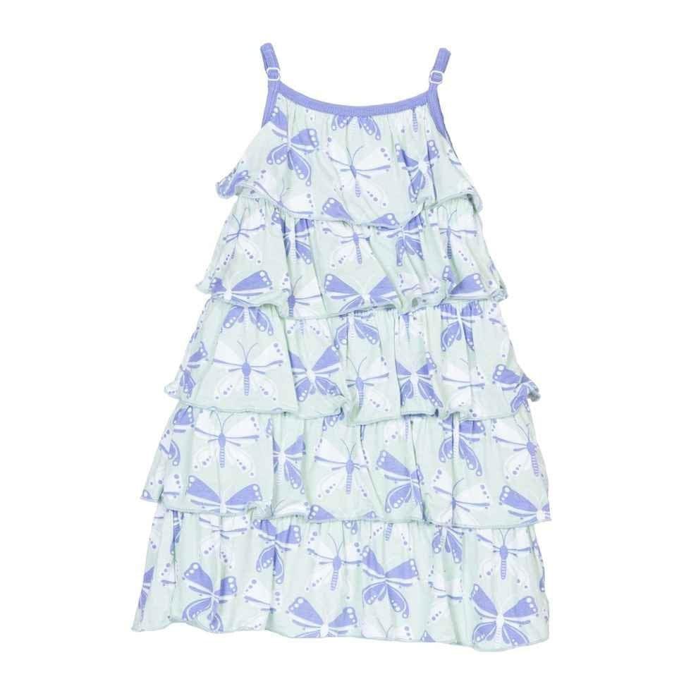 Print Bamboo Tiered Ruffle Dress, Aloe Butterfly