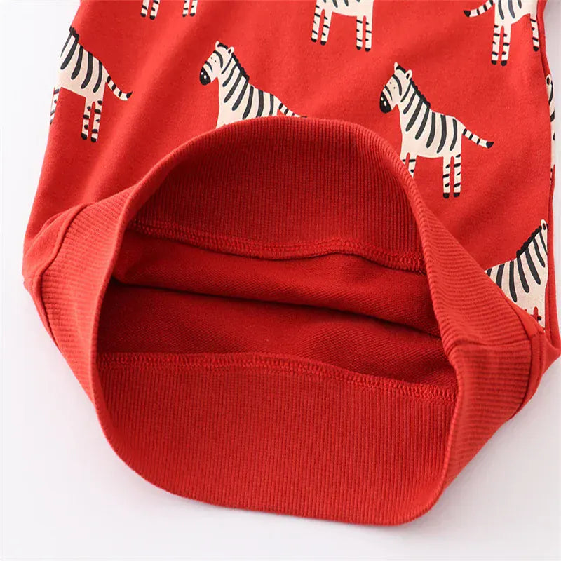 Fits generously and has buttons down the back. The little horses are so adorable. There’s also a unicorn hidden among the horses my daughter had so much fun finding it!