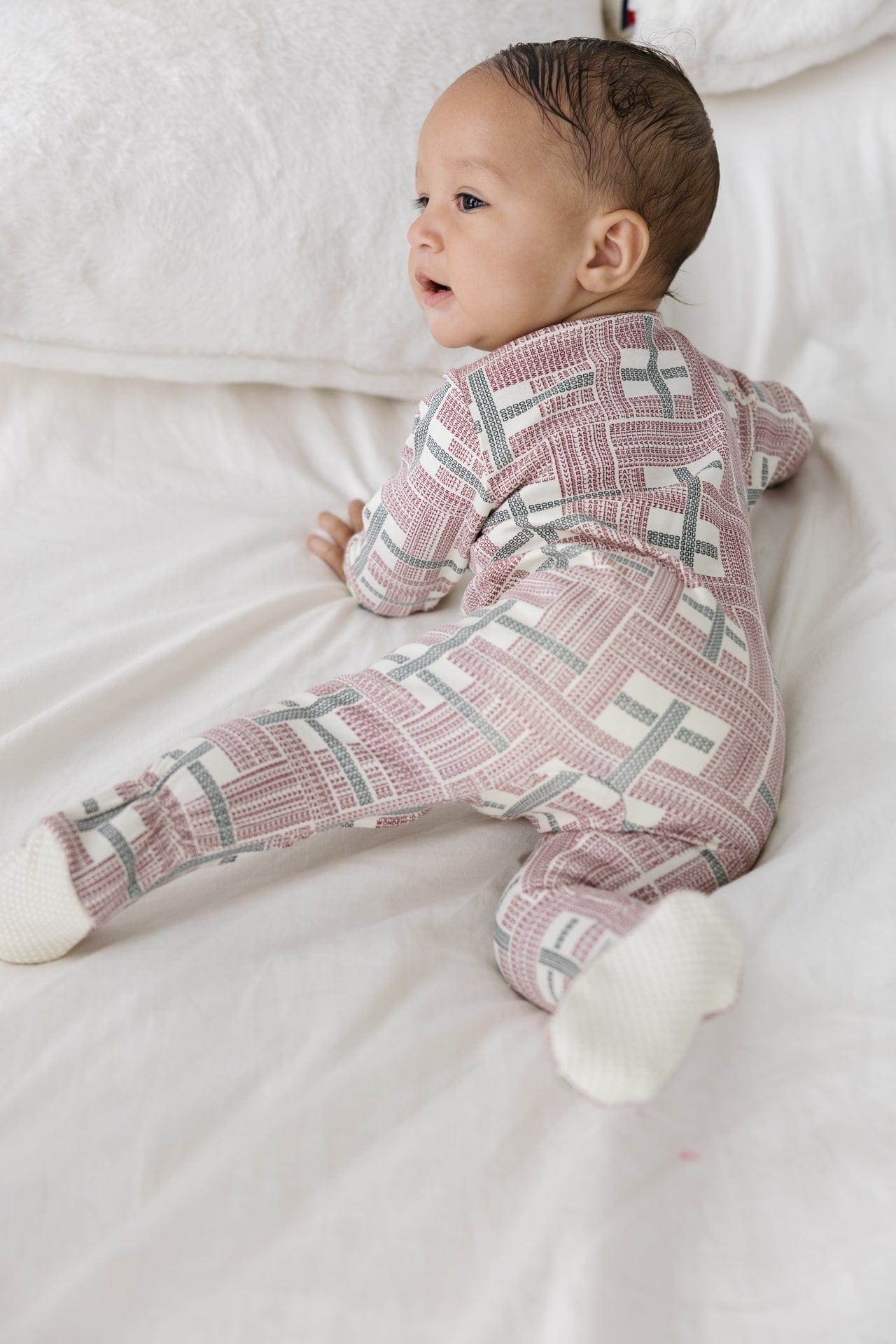 A plaid with a purpose. We took Isaiah’s prophecy—“For to us a child is born…”—and stitched it into the pattern so the names of Jesus form the very weave. The promise of Christmas, woven into every line of your baby’s pajamas—simple, beautiful, and ready to share.