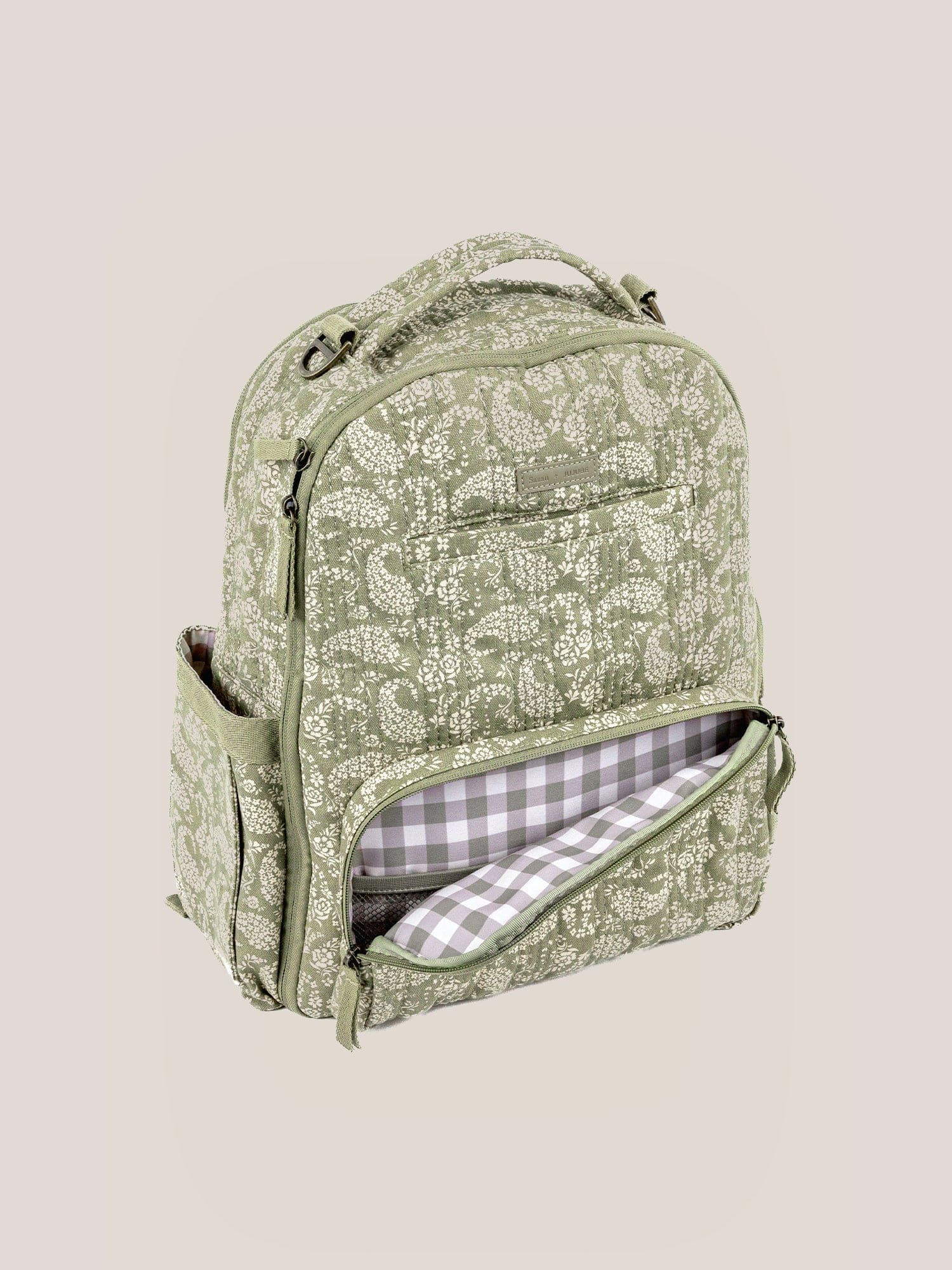 Pockets? Check. Tons of room? Check. So stylish it turns heads? Check. The Classic Backpack diaper bag from Sazan Hendrix + JuJuBe has it all! From an easy-access wipe pocket and insulated bottle pocket to a quick-reach cell phone pocket and a cushioned changing pad, the Classic Backpack is full of intuitively designed features that make parenthood easier. The contoured shoulder straps are comfy, and the trolley sleeve and stroller straps make travel easy. Made with durable and machine-washable 100% cotton canvas in a cute floral paisley print, plus a neutral gingham lining, this bag adds a handmade charm for the baby years and beyond. Wherever life takes you and your little one, you can stop stressing and start making memories!