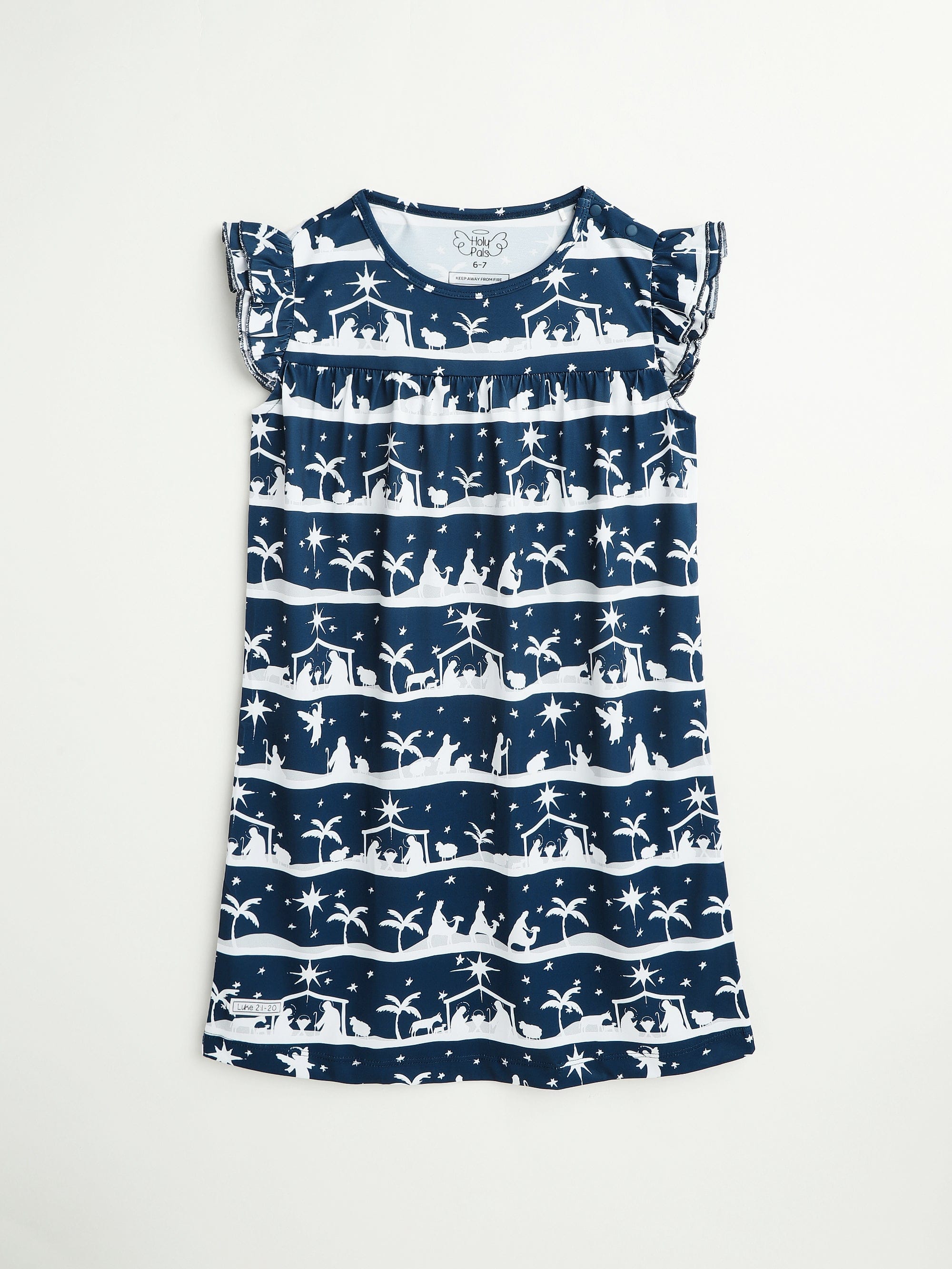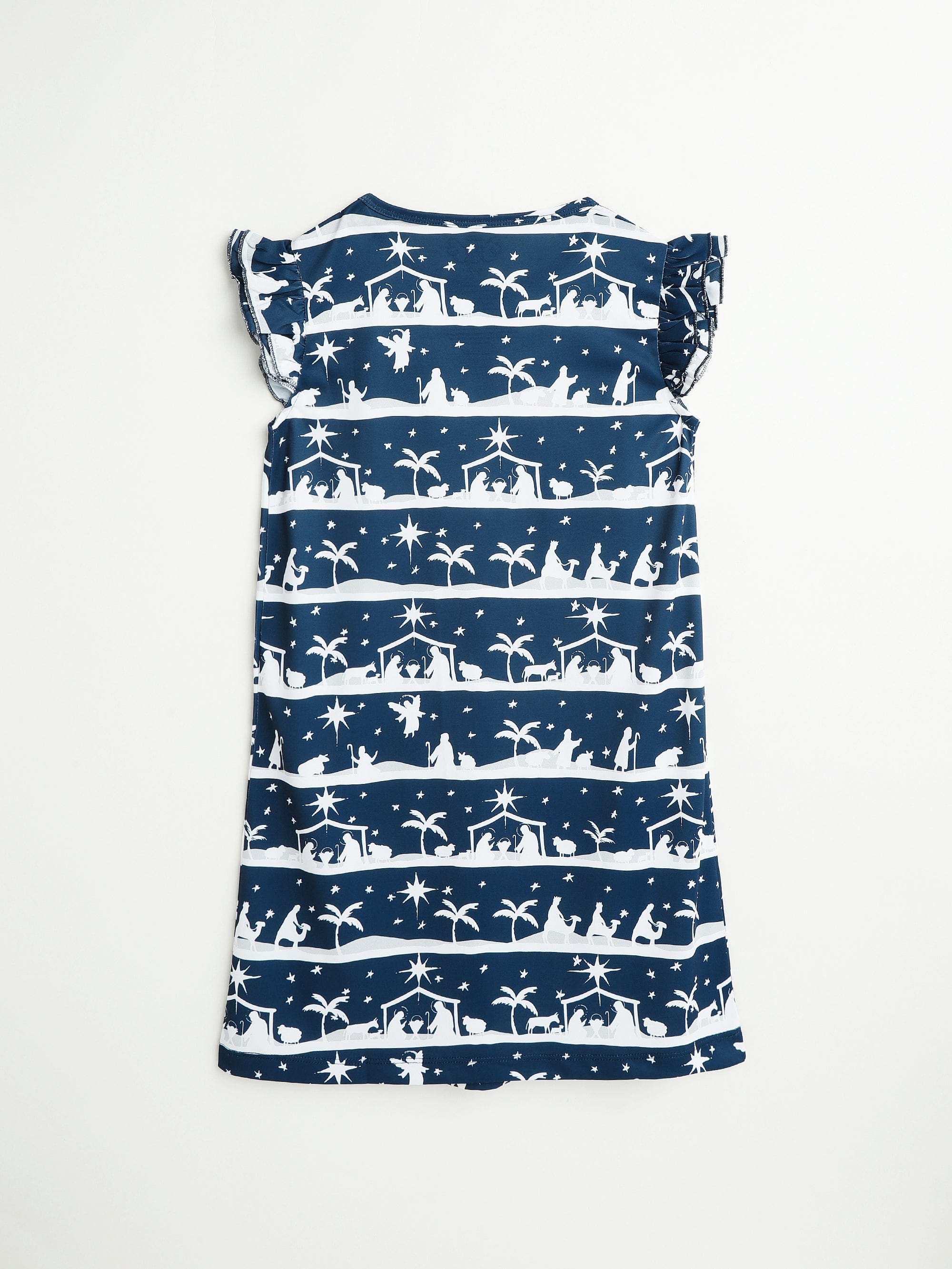 Celebrate the true meaning of Christmas with our Starry Night Girls Nightgown — part of our beloved matching family Christmas pajamas collection. The deep midnight-blue fabric is adorned with gentle Nativity illustrations from Luke 2:1–20, telling the story of Jesus’ birth in every detail.