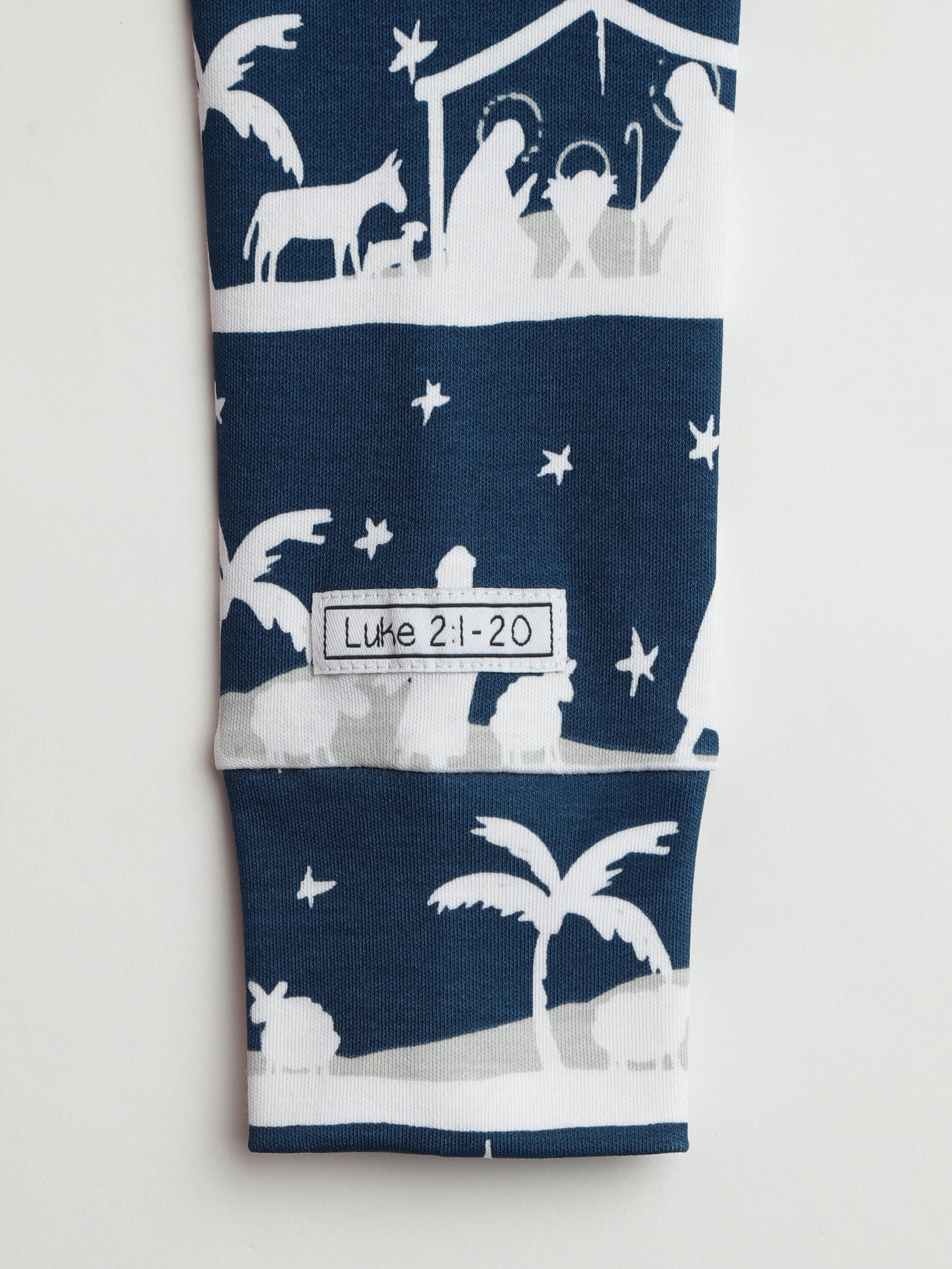 Inspired by Luke 2:1–20, the design beautifully tells the Nativity story—Mary and Joseph’s journey, Baby Jesus in the manger, shepherds, angels, and the guiding star above. Perfect for wearing on Christmas break, during bedtime devotions, or while retelling the story of Christ’s birth in the days leading up to Christmas. These pajamas are more than festive—they’re a warm tradition that wraps kids in the Word of God.