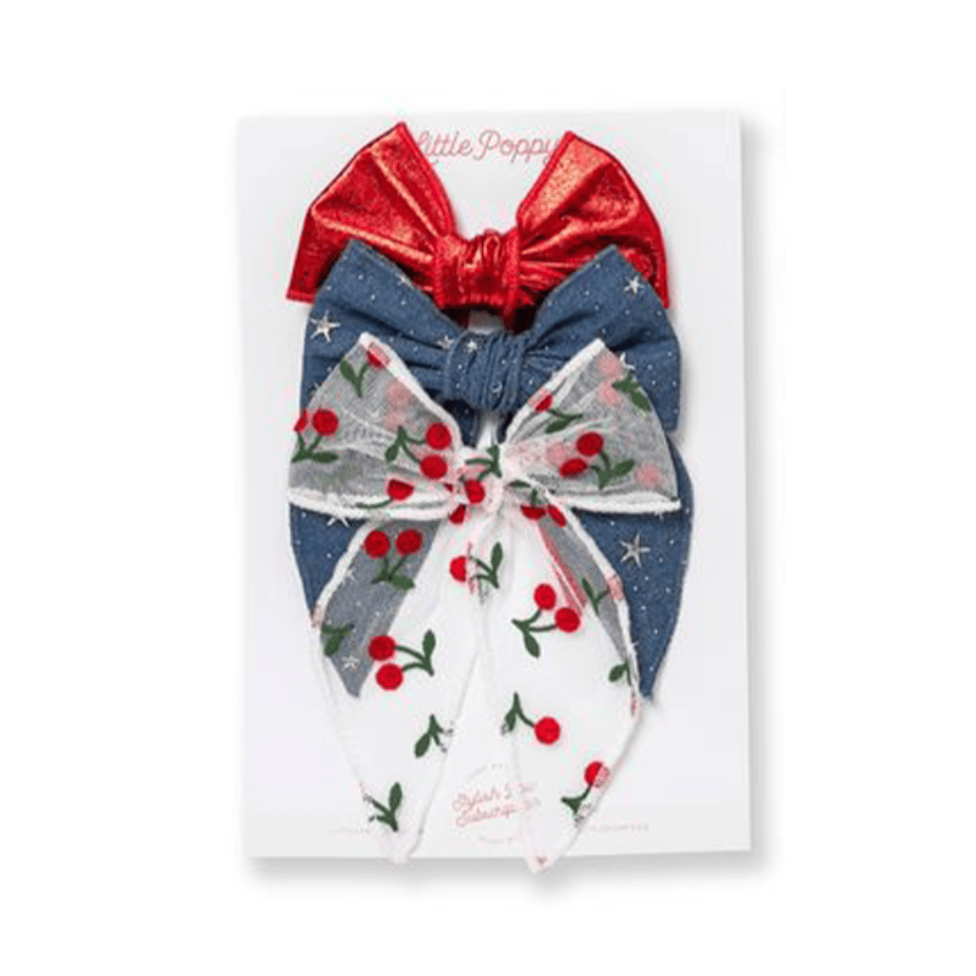 The Cherry Bow Clip Set is a fun, festive addition to any collection, perfect for summer celebrations or everyday wear. Originally featured in July 2024’s bow subscription.